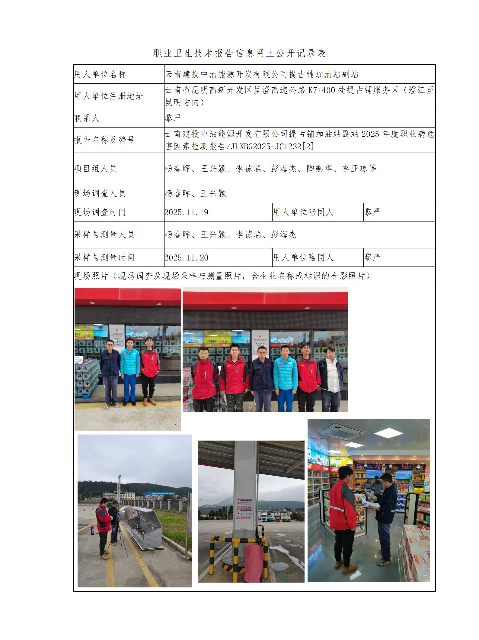 云南建投中油能源开发有限公司提古铺加油站副站2025年度职业病危害因素检测报告