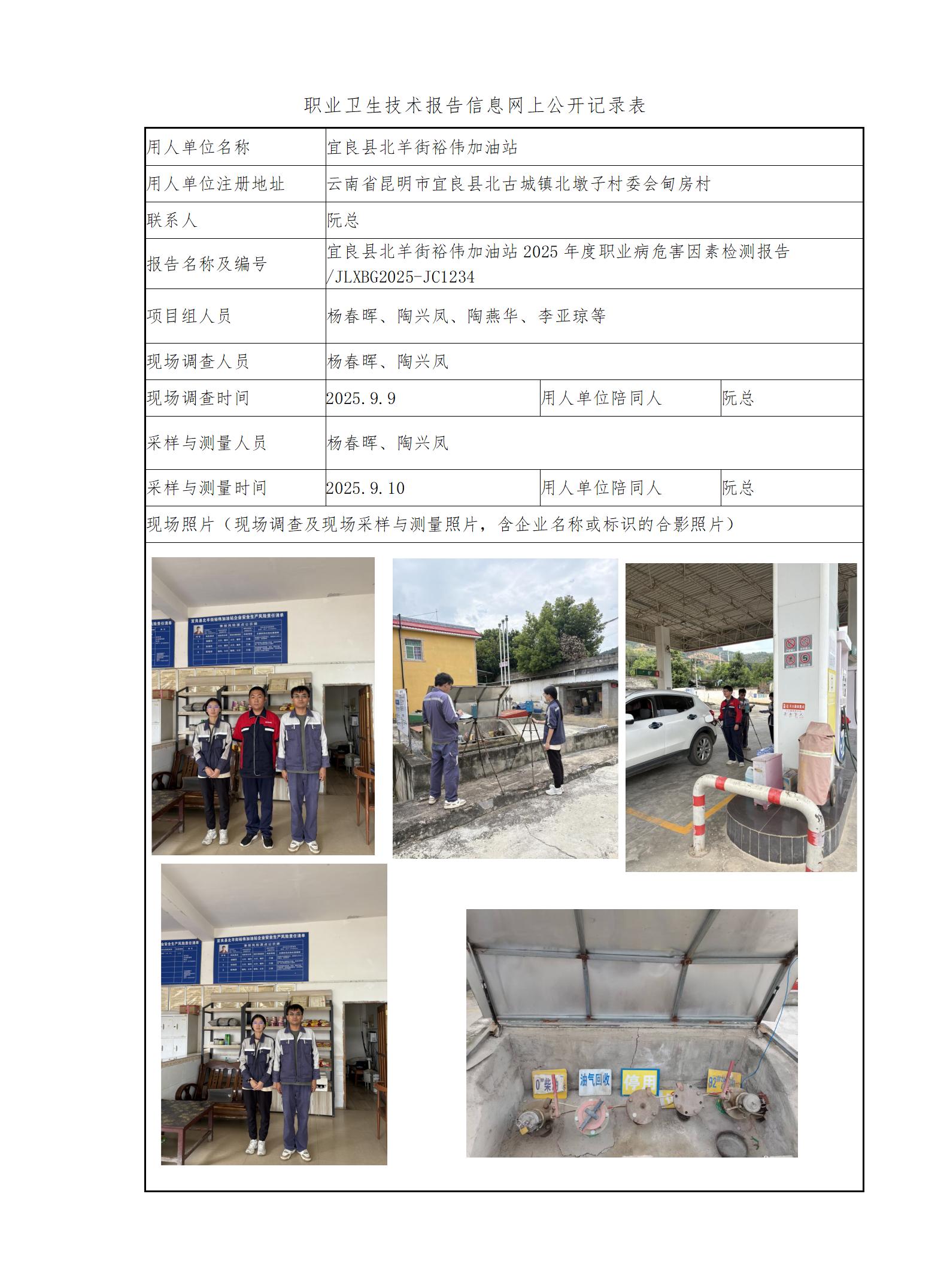 宜良县北羊街裕伟加油站2025年度职业病危害因素检测报告