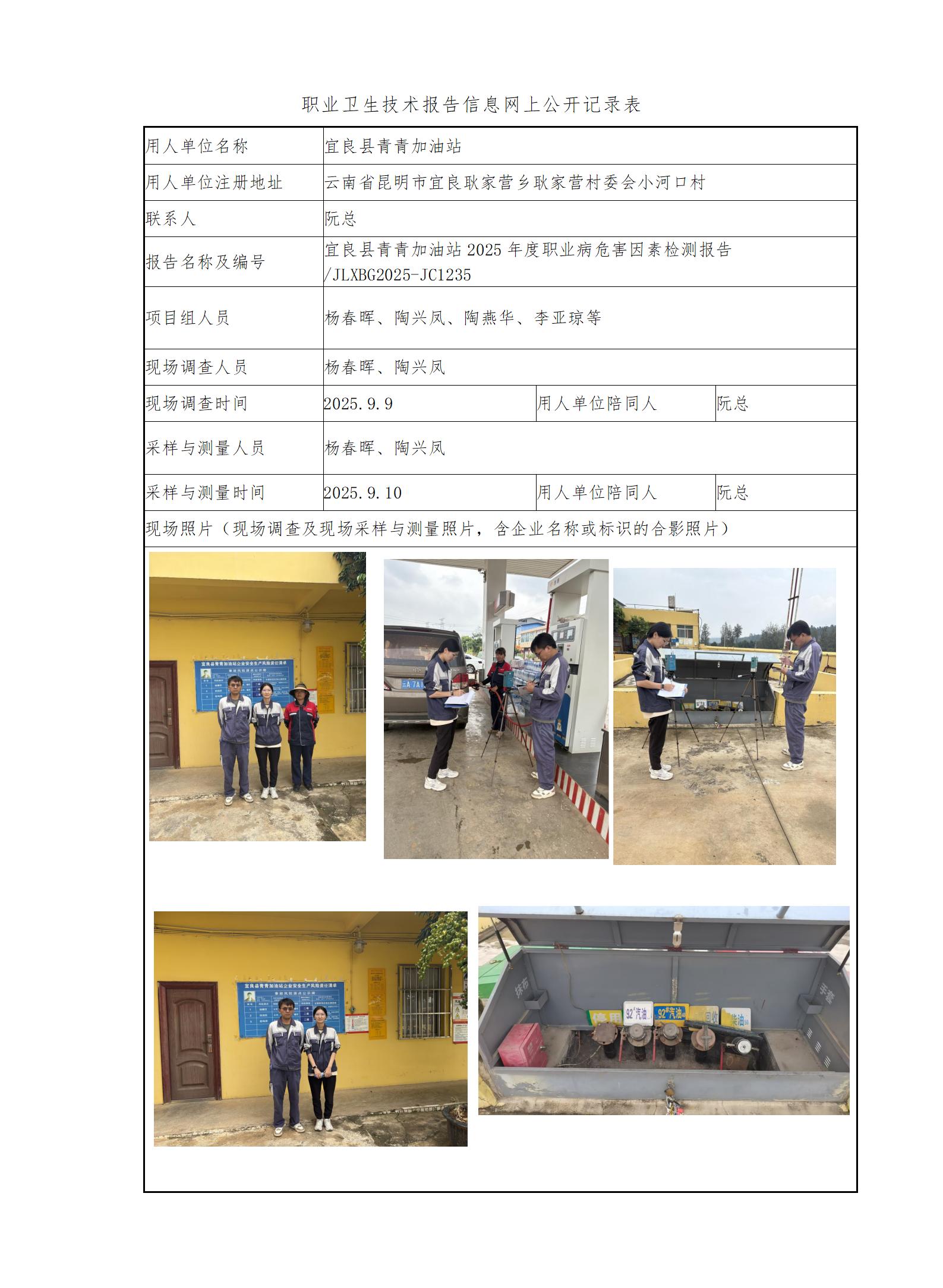 宜良县青青加油站2025年度职业病危害因素检测报告