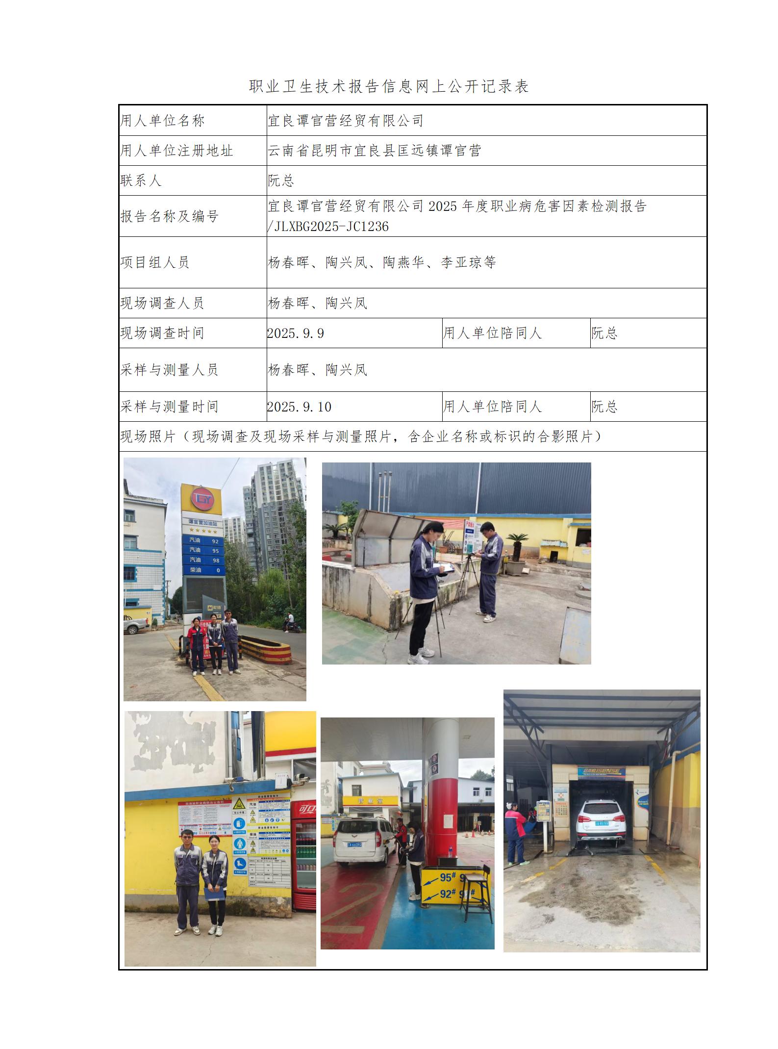 宜良谭官营经贸有限公司2025年度职业病危害因素检测报告