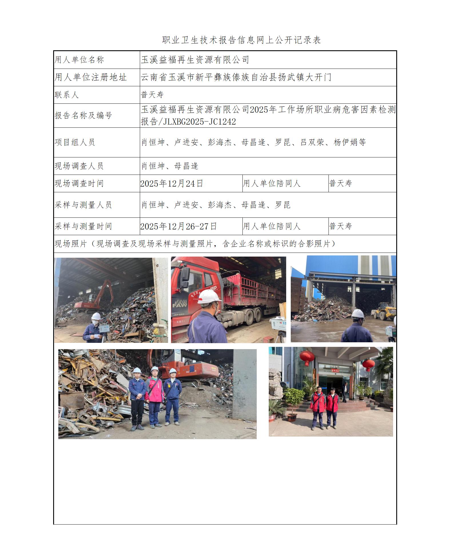 玉溪益福再生资源有限公司2025年工作场所职业病危害因素检测报告