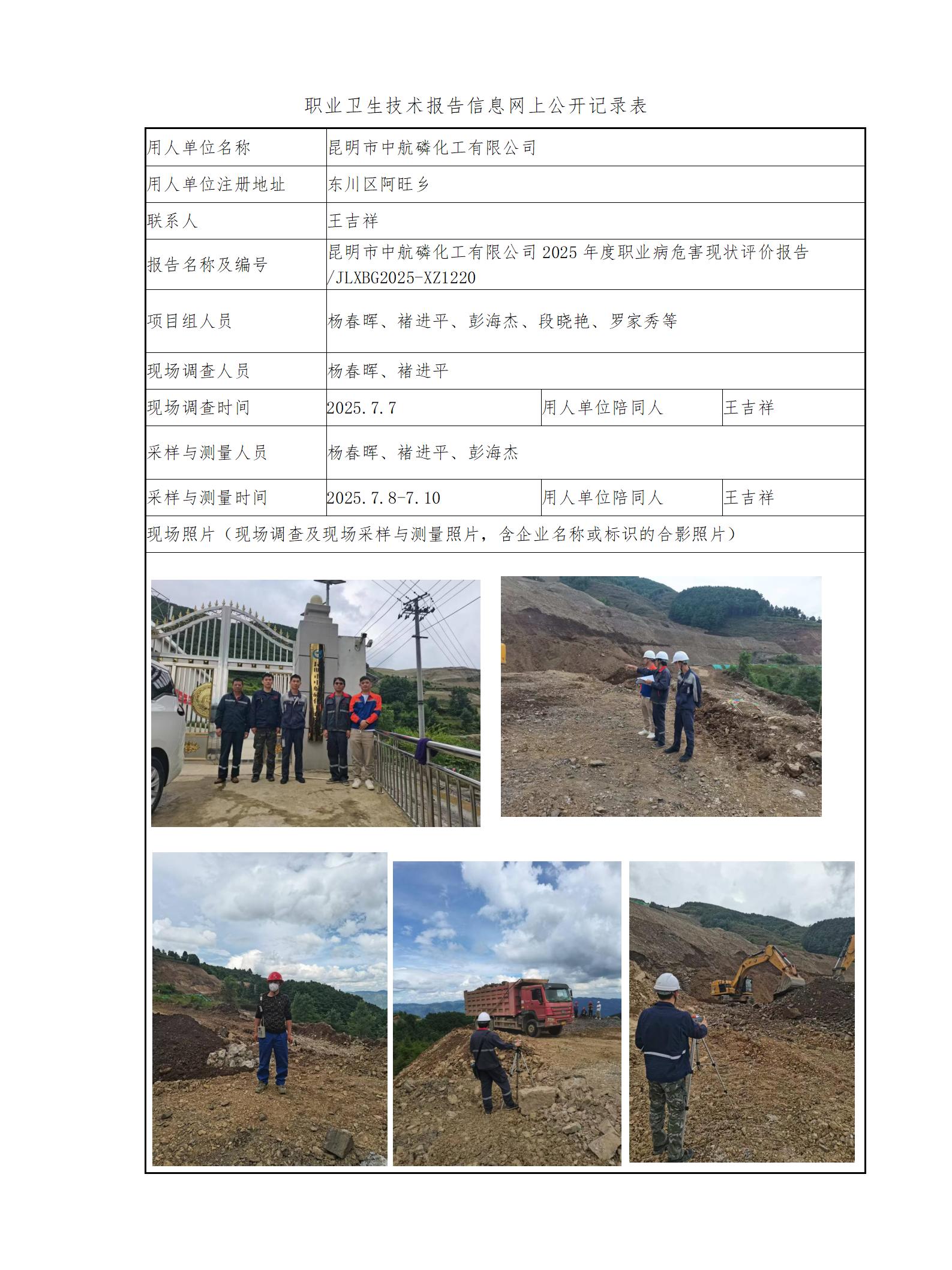 昆明市中航磷化工有限公司2025年度职业病危害现状评价报告